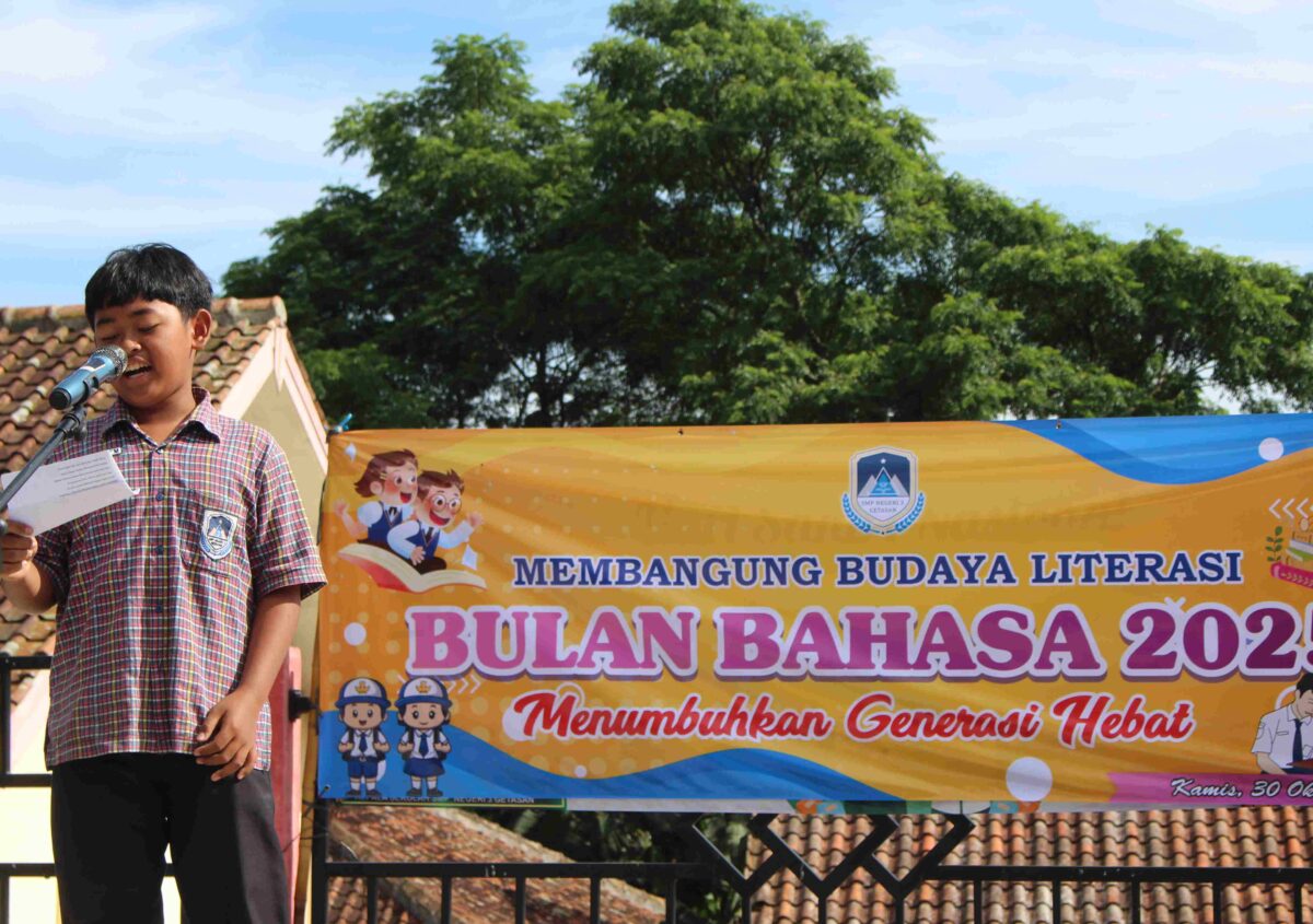 Dalam rangka memperingati Bulan Bahasa dan Sastra Tahun 2025, SMP Negeri 3 Getasan menyelenggarakan berbagai kegiatan yang bertujuan untuk menumbuhkan kecintaan peserta didik terhadap bahasa dan sastra Indonesia. Kegiatan ini dilaksanakan pada hari Kamis, tanggal 30 Oktober 2025 bertempat di lingkungan SMP Negeri 3 Getasan. Adapun rangkaian kegiatan dalam peringatan Bulan Bahasa tahun ini meliputi lomba baca puisi, lomba membaca nyaring, serta kegiatan pembuatan pojok baca di setiap kelas. Melalui kegiatan tersebut, diharapkan peserta didik dapat meningkatkan kemampuan literasi, menumbuhkan minat baca, serta mengembangkan kreativitas dan apresiasi terhadap karya sastra. Kegiatan peringatan Bulan Bahasa ini berlangsung dengan penuh semangat dan antusiasme. Para peserta menunjukkan kemampuan terbaik mereka dalam mengekspresikan karya sastra melalui pembacaan puisi dan membaca nyaring. Sementara itu, kegiatan pembuatan pojok baca menjadi wadah bagi setiap kelas untuk menata dan menghias ruang literasi mini yang menarik dan edukatif. Melalui pelaksanaan kegiatan ini, SMP Negeri 3 Getasan berkomitmen untuk terus menumbuhkan budaya literasi di kalangan peserta didik serta menjadikan Bulan Bahasa sebagai momentum untuk menguatkan jati diri bangsa melalui bahasa Indonesia.